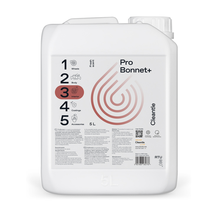 Pro Bonnet+ este excelent pentru reimprospatarea rapida a interiorului masinii. Probioticele folosite te ajuta sa mentii efectul de curatenie mai mult timp, oferindu-ti mai mult timp pentru tine si familia ta.